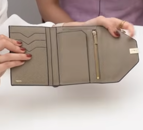 こちらは三つ折りタイプのお財布で、スナップボタン式。中はカードスロットが充実しており、計9つほど。まさに長財布並みの高い収納力を持ちます。またレザーも非常に柔らかくカードの出入れもしやすい仕様に。小銭入れは後ろ側に付いているタイプでL字のジップ式です。2つのコンパートメントとなっているので、小銭の種類別に分けて収納できるのもパーフェクトな仕様と言えるでしょう。