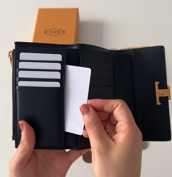∟バッグが人気のトッズですが、お財布もすごく使いやすいと評判です。また海外アウトレット買付の商品がとても豊富で、お値段は比較的手が届きやすいモデルが多いのがトッズと言えます!こちらはミディアムサイズで、ミニ財布以上長財布未満と言ったところ。実はこのサイズ感のお財布を探してる方も多いんじゃないかなと思います。