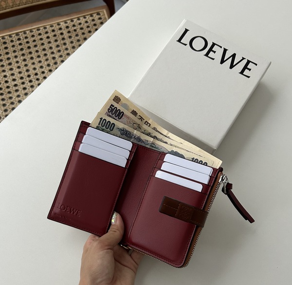 ∟今回ロエベでは2つのお財布を購入。まずはロエベのお財布の中でも定番のモデルと言われているこの2つ折りのお財布。最近は海外アウトレット買付の出品が増えてきており、なんと5万円台から買うことが可能に!色合わせがおしゃれなバイカラーデザインのお財布です。