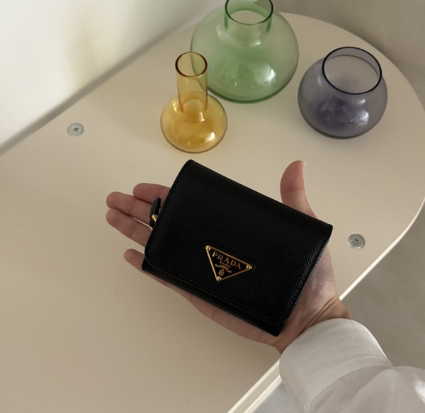 ∟まずご紹介するのはプラダのお財布。プラダのお財布は今までたくさんレビューをしてきましたが、やはり使いやすいモデルが多いという印象です。中もでいま人気なのが、こちらの三折りタイプの「サフィアーノ トライアングル 財布」。こちらはバイマなら5万円台から買えるていうところも人気の理由の1つとなっています!