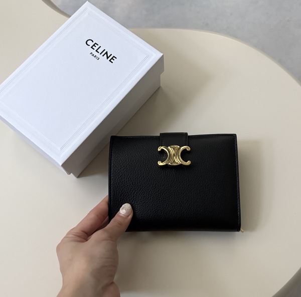 ∟セリーヌでずっと売れている定番モデルがこちらの「ミディアム ストラップ ウォレット」。こちらは、トリオンフがアクセントになっている2つ折りのタイプのお財布で、サイズ感としてはミニ財布というよりかはミディアムサイズぐらいの大きさ。そのため、ミニ財布と長財布のいいとこ取りをしたようなモデルとなっています!