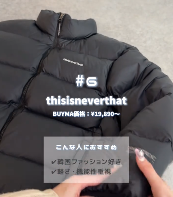 ∟今や韓国を代表するブランドとなったディスイズネバーザットは、手頃な価格で入手できる高品質なダウンが揃います!中でもデザインも普遍的で、トレンドに左右されずオシャレに着こなせる「PERTEX T Down Jacket」は絶対抑えておきたいダウンの一つかも。