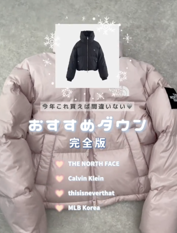 ∟韓国限定ライン「ホワイトレーベル」のダウンジャケットがSNSを中心に大ヒットしているノースフェイス。中でもピンクのカラーリングが可愛いショートダウンジャケットは、アウトドアブランドならではの防寒性とデザイン性を兼ね備えた人気モデルで、今シーズンも注目の的となっています!