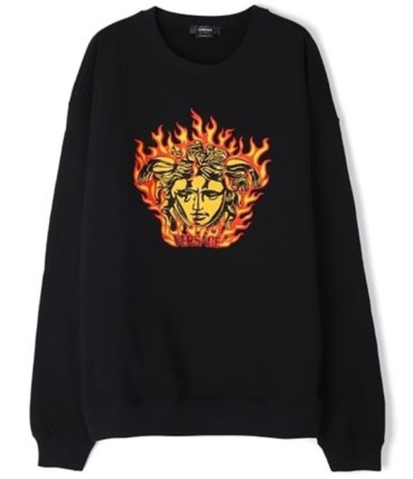 ファイヤーパターンとアイコンのメデューサをミックスしたデザインがスタイリッシュな逸品。ハイエンドな90年代スタイルやアメカジに似合うスウェットです。