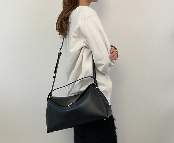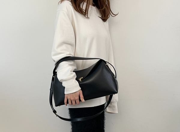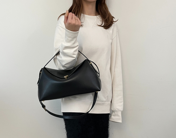 ショルダーとしてラフに持てば、T-LOCKのミニマルな美しさがより自然に引き立ち、日常のスタイルに溶け込みます。肩に軽く掛けるだけで抜け感が生まれ、デニムやシンプルなトップスとも好相性。気負わず使えるのに上品さは失われず、普段のコーデを格上げしてくれるでしょう。