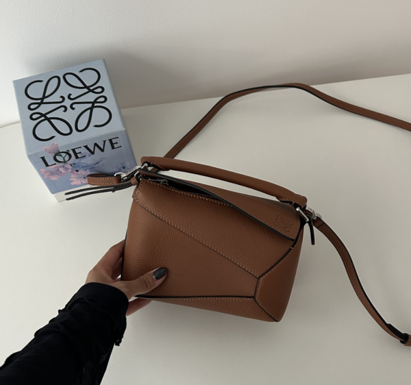 ロエベのパズルミニバッグは、幾何学デザインと立体フォルムが特徴のバッグ。クラシカルなレザーピースにはクラシックカーフスキンを使用。軽量でコンパクトながら必要なものがしっかり収まるサイズ感です。