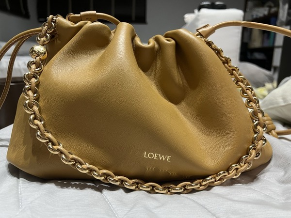 シンプルなモノトーンコーデやベーシックなデニムスタイルには、コンパクトで丸みのある ロエベ フラメンコパース がぴったり。小さめサイズながら存在感があり、コーデにさりげない華やかさをプラスしてくれます。