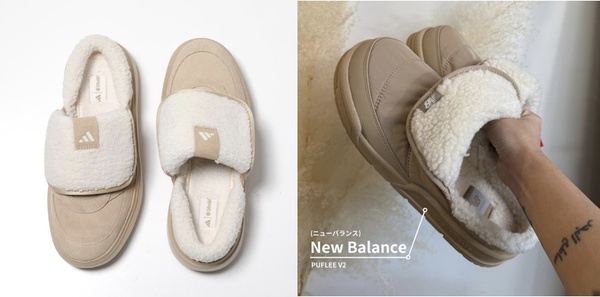 ここまで紹介してきた「グランドコートミュール」ですが、同時にSNSで話題をさらっているニューバランスのボアスリッポン「PUFLEE V2」。実はこの両者、とても似ていると話題となっているのです。では、両者の違いを詳しく見ていきましょう!