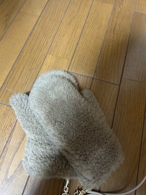 少し厚みのある柔らかいニット素材と指先が自由になる優しいアイボリーカラーがとても素敵な手袋です。どんなコーディネートにも合わせやすそうなデザインなので今年の冬は大活躍しそうです。片方のみココマークがついています。