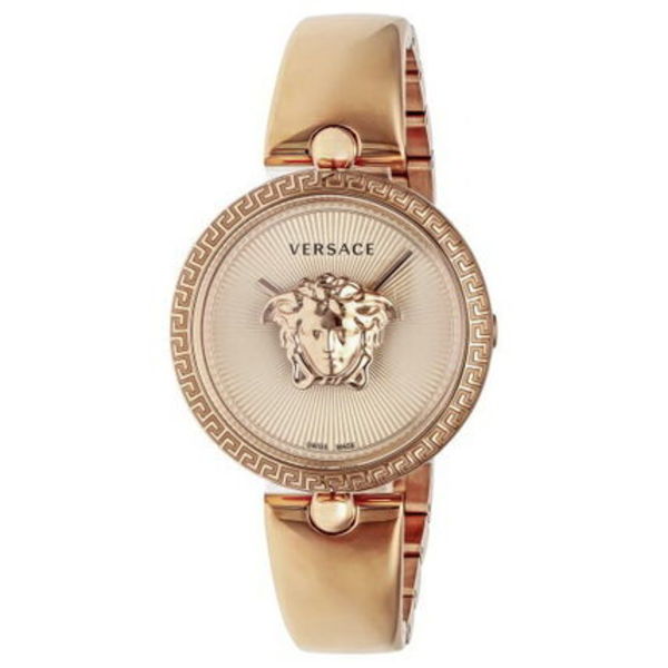 VERSACE(ヴェルサーチェ)の腕時計は、他のブランドにはないリッチなムード満載♡「PALAZZO」は、アイコンのメデューサを立体的に施した存在感抜群のデザイン。一方文字盤はかなりシンプルなので、メリハリがあって奥行きがあります。