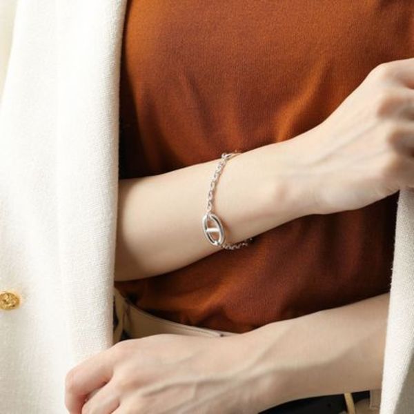 HERMES(エルメス)といえば、やっぱり「シェーヌダンクル」シリーズ♡錨モチーフとトグル式の留め具がアクセントになったブレスレットは、ちょうどいい存在感◎長く愛され続ける定番モデルなので、一生モノのブレスレットを探している方にもおすすめです。