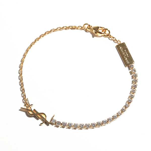 Saint Laurent(サンローラン)からは、華奢なチェーンブレスレットをご紹介。さりげなくあしらわれたハートやYSLモノグラム、ラインストーンが上品なポイントになっています。深みのあるゴールドカラーで、お肌に血色感も与えてくれます。