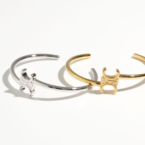CELINE(セリーヌ)のトリオンフモチーフをあしらったバングルは、細めのラインで簡単にきれいめに取り入れられるのが魅力♡余計な装飾のないシンプルなディティールなので、コーデが物足りないときサッと着けられます。