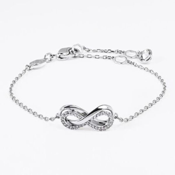 ダイヤモンドのように光るスワロフスキークリスタルをあしらったジュエリーがゴージャスなSWAROVSKI(スワロフスキー)。∞モチーフのブレスレットは、シンプルなシルバーカラーと華奢なチェーンで上品♡オフィスシーンとも相性抜群です。