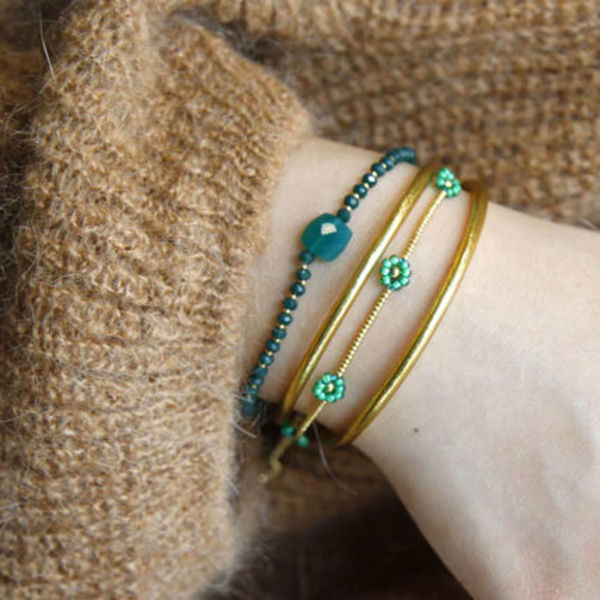 BTSのテテが着用したことで一挙に有名となったLes Cleias(レ クレアス)。花モチーフのブレスレットは、繊細なビーズがおしゃれ感満載♡人気のグリーンはもちろん、ブラックやパープルなどカラー展開も幅広いので推しカラーで自分らしさを表現してみてはいかがでしょうか?