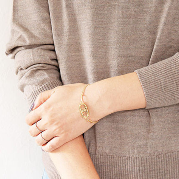 ブレスレットは、サイズ選びがかなり重要。手首まわりの長さ+1cmがジャストサイズと言われていますが、それより長くなればゆとりが出てカジュアルな印象に。窮屈に感じないのでストレスフリーです。長さを調節できるものなら、気分によって雰囲気を変えられますよ。