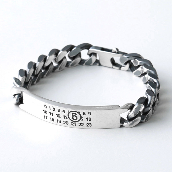 MM6 Maison Margiela(エムエムシックス)からは、今年ナンバリングロゴでブランド感満載なブレスレットが登場!あえてヴィンテージ加工が施されたシルバープレートと、存在感のあるチェーンで一気にコーデをモードに格上げしてくれます。