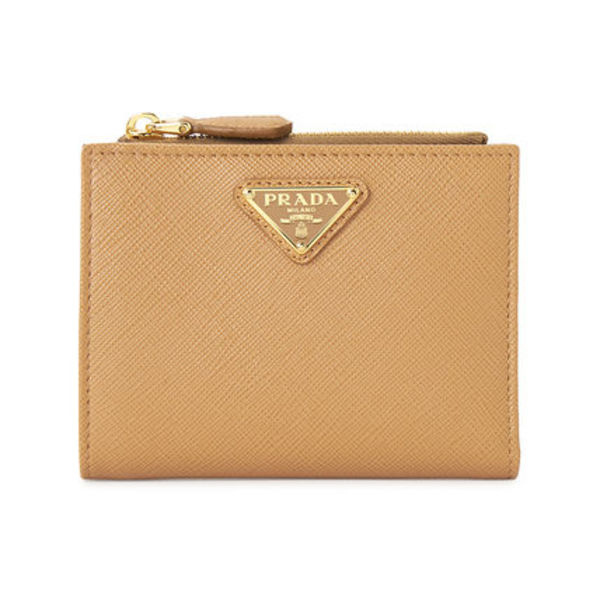 お財布人気絶大な PRADA(プラダ)は、5~6万円台と比較的手の届く価格帯で展開されているモデルが多いのも魅力♡ベーシックな二つ折り財布は、マットなカウハイドレザーが丈夫で長くずっと使えるデザインに。同色であしらわれたトライアングルロゴがエッジを効かせています。