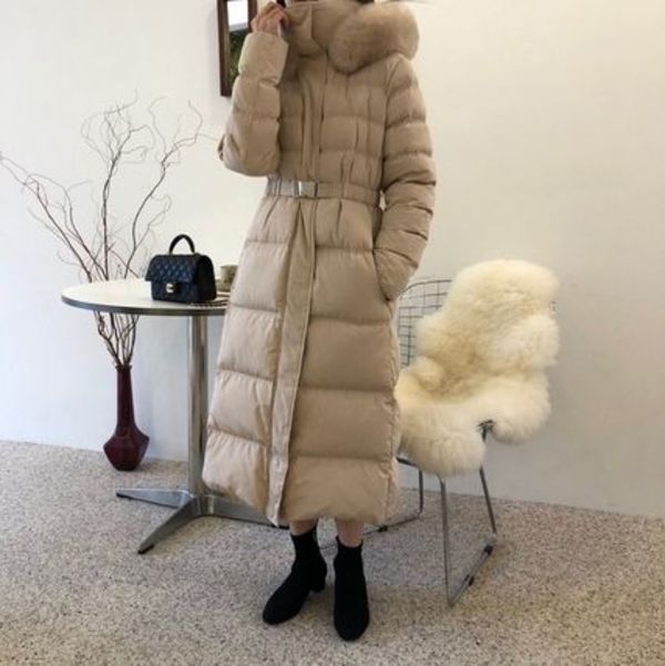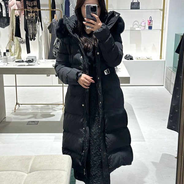 ∟同じくリアルフォックスファーを100%した”ロング丈”タイプのダウンも、予算内で買えちゃいます!中詰め物はダウン90% フェザー10%と防寒性もバッチリ。特に後ろから見た時のスラリとしたシルエットが非常に美しく、お値段以上の高級感漂うダウンコートと言えるでしょう。