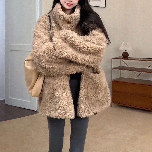 お尻まですっぽり包まれるようなシルエットが愛おしくて、フェイクムートンにラムウールを全体的に使用した暖かい見た目が高級感増し増し!
