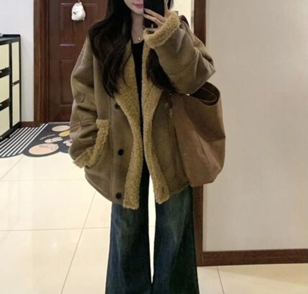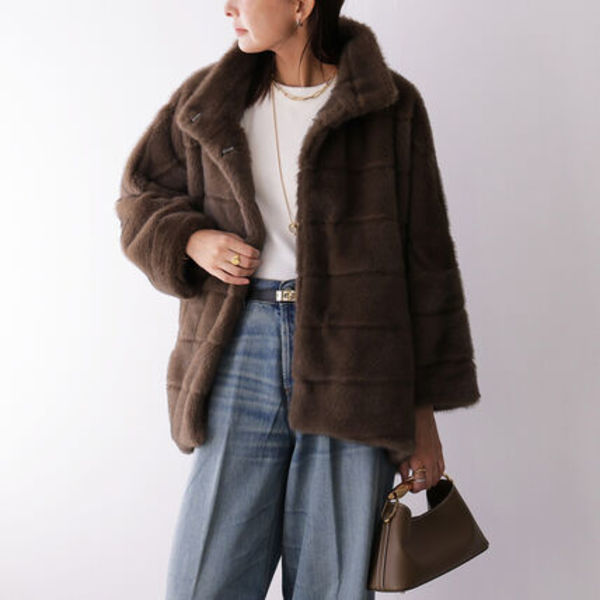 ∟フェイクムートンにラムウールを全体的に使用した、暖かいジャケットはリバーシブルタイプ。お尻が隠れるほどの程よい丈感とちょっと緩めのサイズ感で、抜け感がサマとなります。寒い冬に最適なボリューム襟で、ムートンコートをお安くゲットしたい方はとってもおすすめ。1万円以下でゲットできるので、かなりお得ですよ!