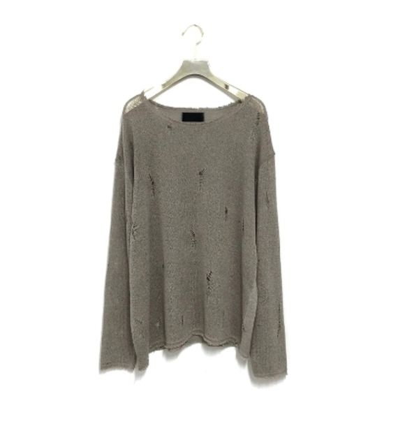 ハードなデストロイ加工が施されたニットは、アイオンソウルのアイテム。アメカジやY2Kスタイルに似合う逸品です。パンキッシュなトップスをお探しの方にもおすすめ。