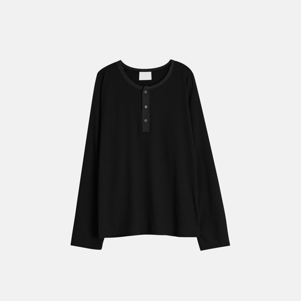 さらっと1枚で着用できるエジュクロのヘンリーネックTシャツです。