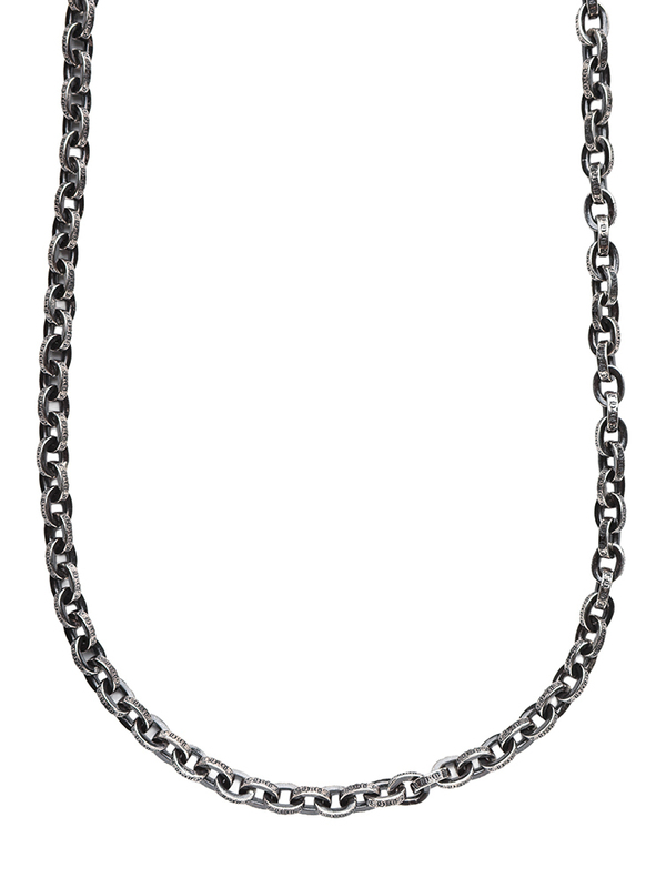 クロムハーツの人気ネックレスチェーンであるペーパーチェーン。コマ一つ一つにクロムハーツのロゴの刻印のある存在感抜群のアイテム。チャームを付けてもそのままでもサマになる逸品です。