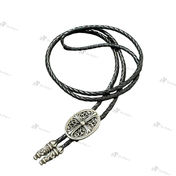 オーバルクロスとレザーブレードの組み合わせが武骨な雰囲気を醸すネックレスです。ドレスアップスタイルにループタイとして使ってもおしゃれです。大人に似合う逸品。