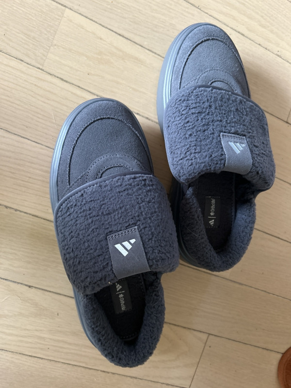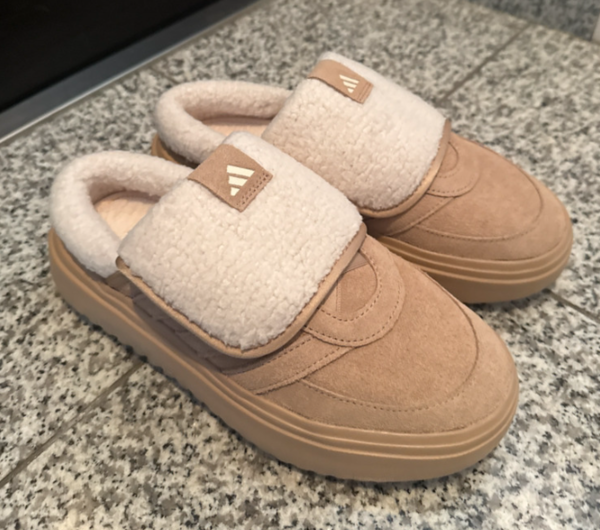 グランドコートミュールは、アディダスの定番テニスシューズ「グランドコート」をベースに、脱ぎ履きしやすいミュールタイプへとアレンジした一足です。ボリューミーなフリーススリッポンで、ため、ちょっとした外出やデイリー使いにぴったり。