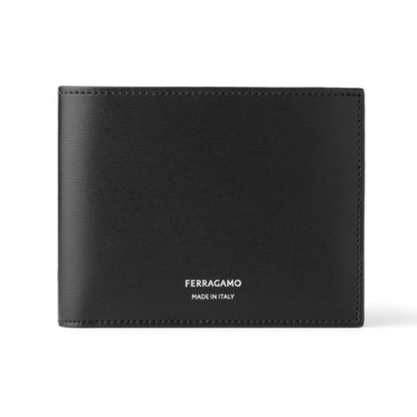 FERRAGAMO(フェラガモ)からは、上質なレザーを引き立てるシンプルな二つ折り財布をご紹介!シルバーの箔押しロゴがさりげなく、オンオフ問わず使えます。