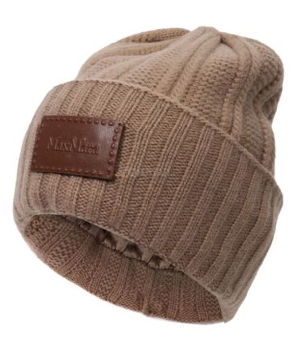 Max Mara(マックスマーラ)のニット帽は、上質なカシミヤを使っているので肌触りがよく保温性抜群。フロントの大きなレザータグは同色であしらわれているので上品さを忘れず大人っぽく取り入れることができます。