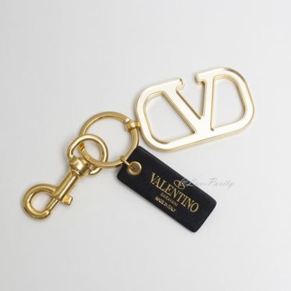 VALENTINO(ヴァレンティノ)のVロゴは、おしゃれさんの間でアクセサリーやキーリングなどで取り入れるのが人気。レザータグにはブランドロゴが施されて上品さを演出しています。
