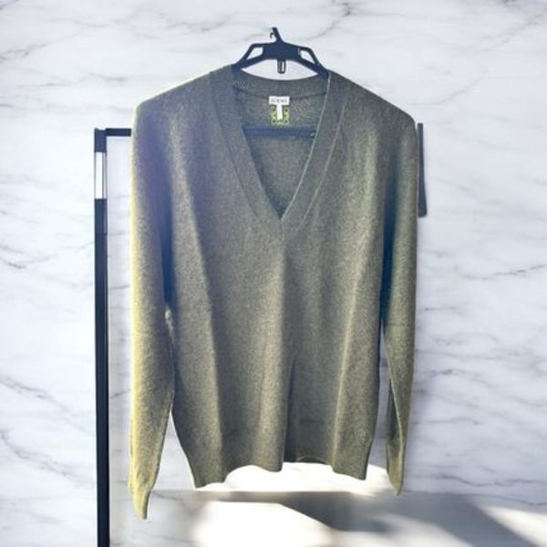 LOEWE(ロエベ)のカシミヤニットは、編み目が細かくきちんと感満載♡ざっくりとしたVネックで首元のチクチクが気になる方にもおすすめです。バックスタイルにさりげなくアナグラムがあしらわれているのがロエベらしいです。