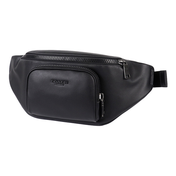 オールレザーのコーチのウエストバッグです。ロゴもバッグと同じ同系色の黒なのでシック。使い込んで経年変化を楽しむことのできる逸品です。