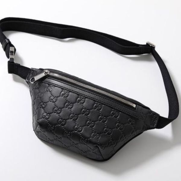 ダブルGのエンボス加工が施されたグッチのボディバッグです。定番アイテムなのでどんなスタイルにも似合います。レザータイプなので経年変化も楽しめます。
