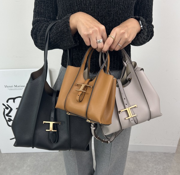 ∟定番人気モデルの「T タイムレス レザー ショッピング バッグ」は、トッズバッグの人気に火をつけたアイテムの一つ!しなやかな曲線が美しいデザインが特徴で、サイズが大きいモデルは通勤バッグとして圧倒的な人気を誇ります。また、ミニマルなサイズ感が可愛いミニもおすすめで、「T」ロゴのメダルペンダントがちょうどいいアクセントを放ちます。