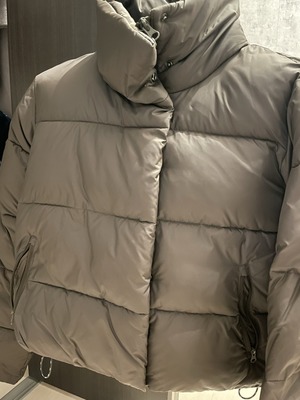 XSとSで迷いましたが、相談した結果、XSで良かっです。今、8ヶ月の妊婦ですが、素材も少し伸びるので、ボタンも余裕で止められました。身長164cmで、肩幅少しありますが、普通体型で、妊婦でもキツくもなく、ぴったしでした。着丈も長くなく、満足です。今年の秋から来年の冬にかけて、着用するのが楽しみです。何よりとてもモコモコしていて、可愛いです。