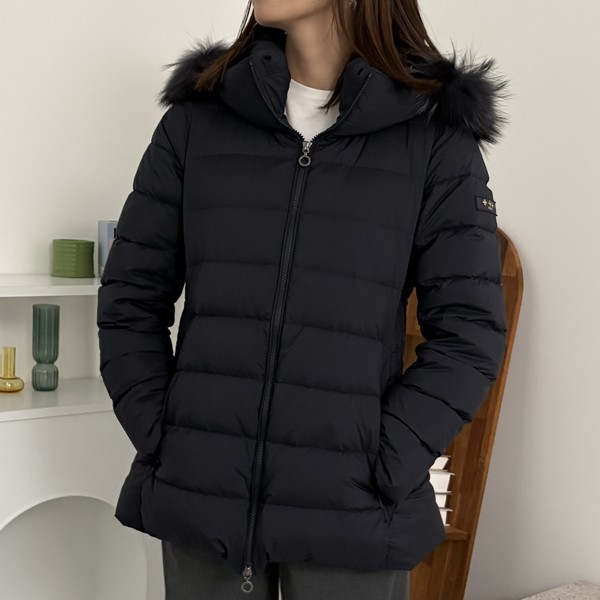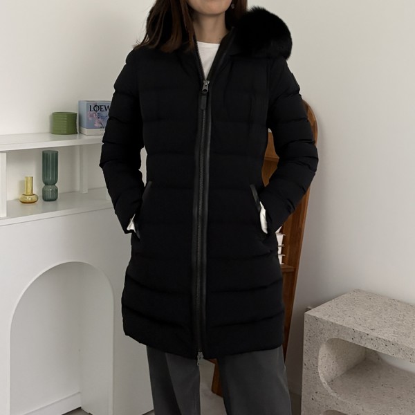 腕にあしらわれたクロスのロゴがトレードマークのTATRAS(タトラス)。人気のダウンジャケットは、ウエストを程よく引き締めた美シルエットがポイント!フードの上質なファーが顔まわりに華やかさをプラスしてくれます。
