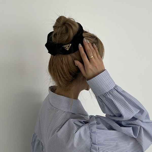 もらったら嬉しい旬アイテムといえばPRADA(プラダ)のシュシュ。高級感のあるナイロンを使っているので、丈夫でとにかくエレガント♡シックなブラックなら、どんなファッションテイストの人でも使えます。