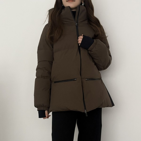 トレンドのブラウンカラーを探している方は、HERNO(ヘルノ)のラミナーダウンがおすすめ。スッキリとした肩回りと、すらりとしたAラインが美シルエット♡サイドにはジップが付いているので、動きやすくて抜け感をプラスすることができます。