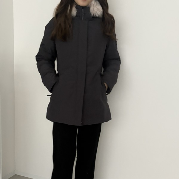 身長157センチ、体重52キロです。レビューを見て、サイズSかMで迷いましたが、スリムパンツと合わせたくて、フィットシルエットにしたかったので、Sで正解でした。セーターにユニクロのボアジャケットを着ても大丈夫です。色は写真どおり、生地も見た感じどおりでパリッとしています。ダウンもしっかり入っており、少し重みがあり、とても暖かいです。1つ、スナップが上下2枚をしっかり持って合わせないと、片手では合わせることができにくい(はずれることはない)ので、★-1にしました。フードのボアは、ベージュというより、ライトグレーです。