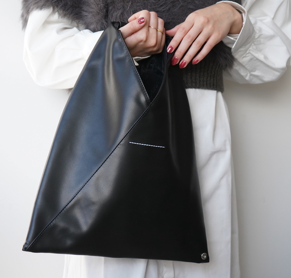 三角形のフォルムでお馴染みの「ジャパニーズ」は、モダンさで魅了するエムエムシックスのアイコンバッグ。「ジャパニーズ」バッグを再解釈した新作「ドレープ」は、コロンとしたフォルムで持ち手が短めのデザインで、40代女性にもおすすめです!