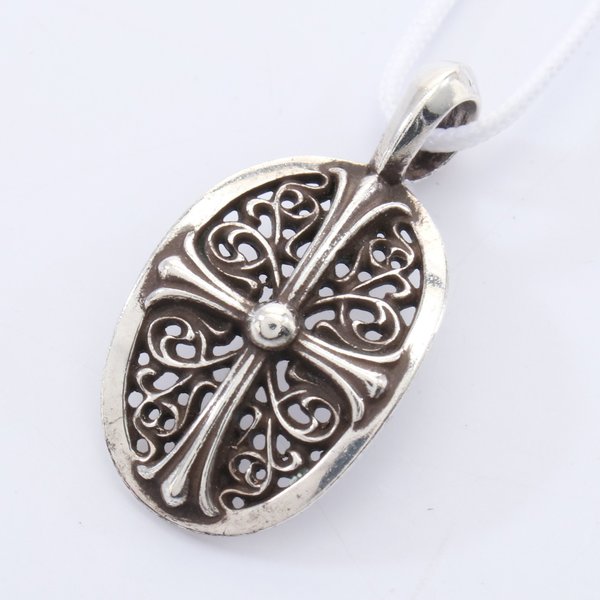 ベルトのバックルでもお馴染みのクラシックオーバルのペンダントトップです。クラシカルで気品のあるデザインなのでスタイルを選びません。