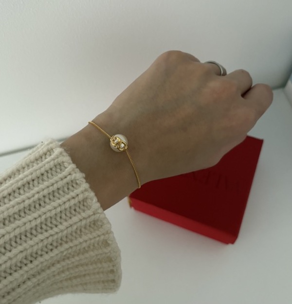 繊細なチェーンに一粒のパールがアクセントとなった、VALENTINO(ヴァレンティノ)のブレスレット!細身のブレスレットは、手首の細さを強調し華奢で華やかな女性らしい雰囲気を高めてくれます。また動きに合わせてきらきらと輝き、大人の女性らしさを演出してくるでしょう。