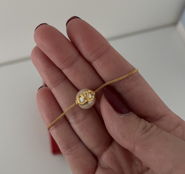 繊細なチェーンに一粒のパールがアクセントとなった、VALENTINO(ヴァレンティノ)のブレスレット!細身のブレスレットは、手首の細さを強調し華奢で華やかな女性らしい雰囲気を高めてくれます。また動きに合わせてきらきらと輝き、大人の女性らしさを演出してくるでしょう。