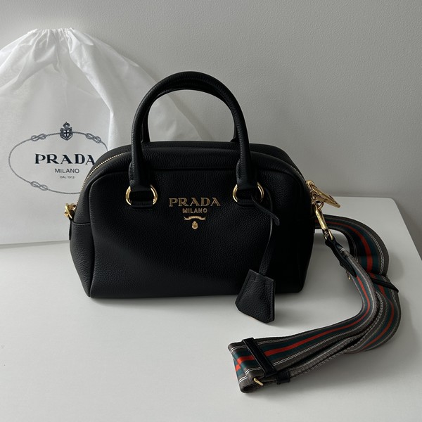 ナイロンバッグの人気が強いPRADA(プラダ)ですが、30代ならきちんと感のあるレザーバッグを選んでみては?コロンと丸みのあるハンドバッグは、ゴールドのブランドロゴが高級感を演出。ストラップが太めなので、斜め掛けしてもストレスフリーです。