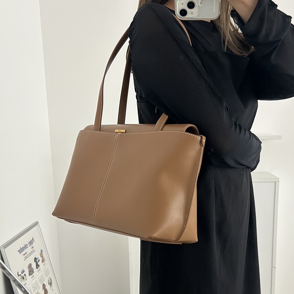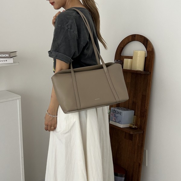 長方形のバッグに長めの持ち手が付いたトートバッグは、基本的に肩掛けできる設計に。開閉口ががばっと開く大容量サイズで、通勤シーンや1泊2日程度の旅行バッグとしても重宝します。