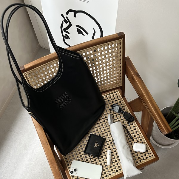 MiuMiu(ミュウミュウ)の「IVY」トートバッグは、しなやかなレザー素材で女性らしく持てるアイテム♡マチの無いスリムな見た目ながら、ノートPCや日傘なども入るので通勤バッグとしても大活躍します。