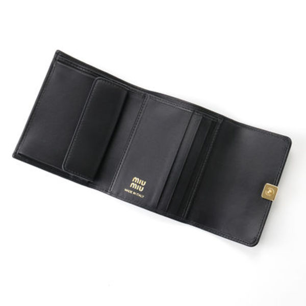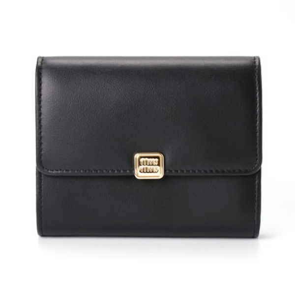 ブラックにゴールドのメタルロゴの組み合わせは、ミュウミュウにおいて最もクラシックで飽きのこない王道カラー!